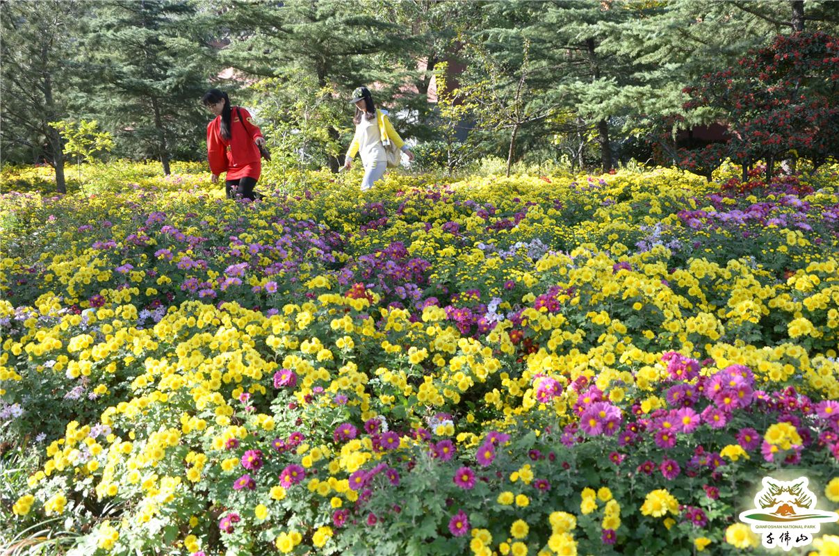佛慧山景区在黄石崖入口至黄石崖遗址造像主游览路、通往开元寺遗址防火车行道两侧,以及樱花广场、智慧禅心、舜田花海、旱溪等多个景观节点,按照从品种菊到地被菊再到野菊自然过渡的游赏思路,根据自然地形地貌,用不同花色、花期、花形的菊花品种,搭配成高低错落,与自然环境相协调一致的“菊花花海”生态自然景观。