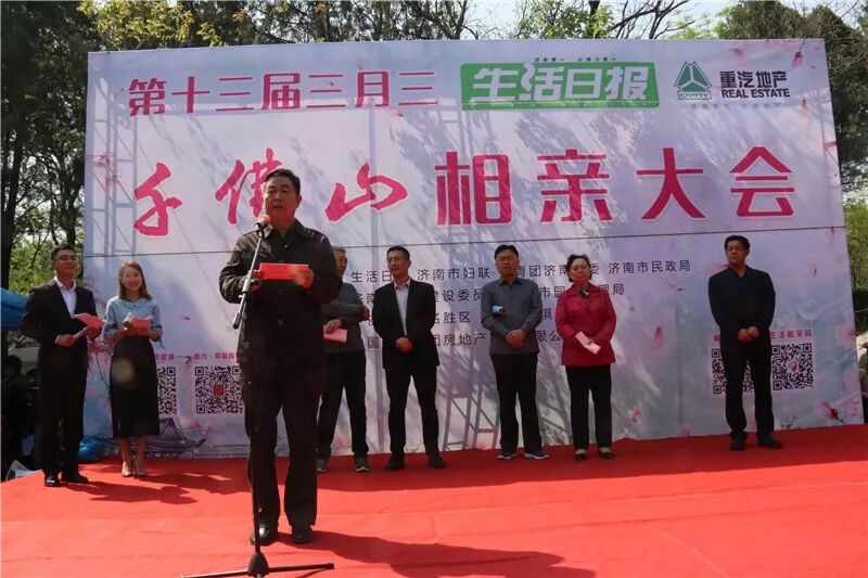 开幕仪式上,济南市城乡建设委员会党委委员、市园林管理局局长刘建东,生活日报总编辑、总经理廖鲁川先后致欢迎辞;共青团济南市委副书记孙华讲话,济南市妇联副主席王萍宣布“第十三届千佛山三月三相亲大会开幕”。开幕式后,与会领导到活动现场参观指导。